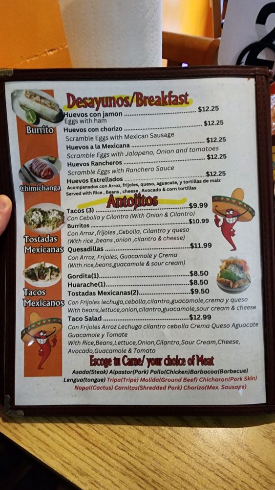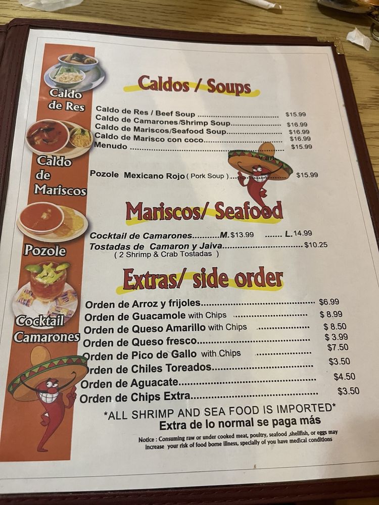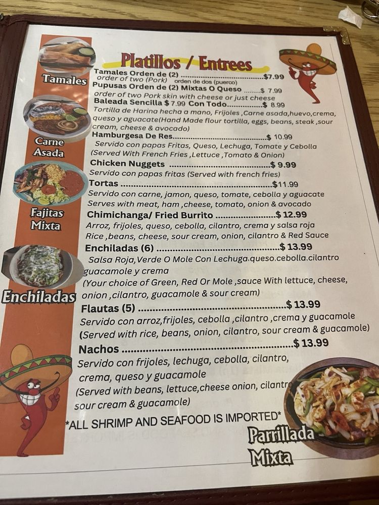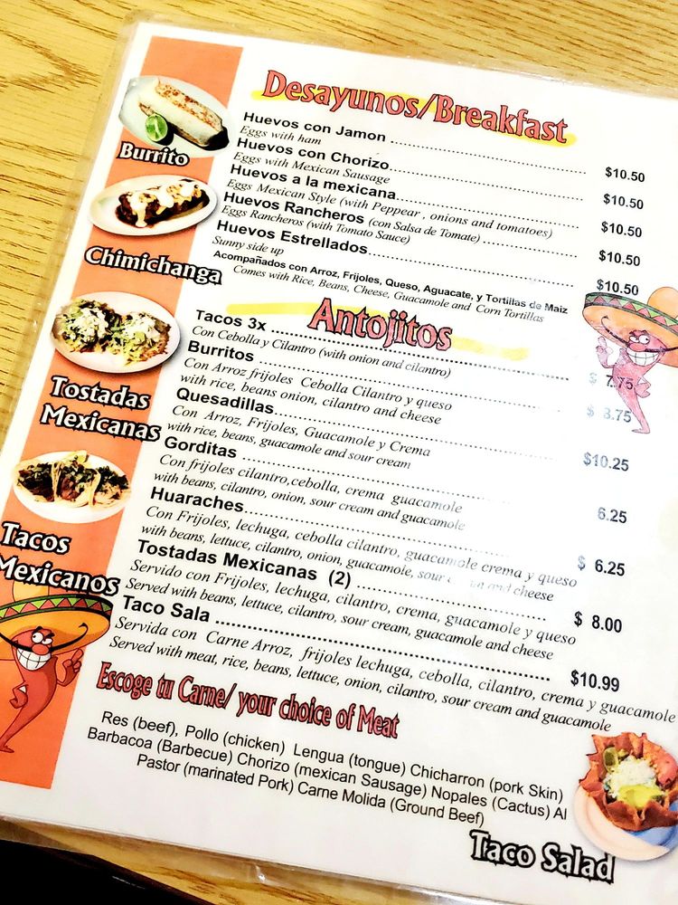 Huaraches: Thick corn dough base, topped with beans, lettuce, cheese. Choice of meat includes beef, pork, chicken, or cactus.