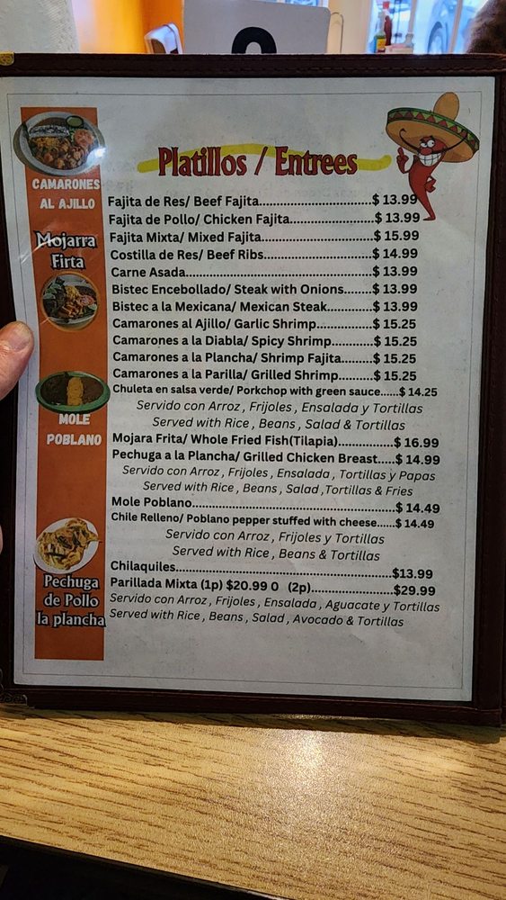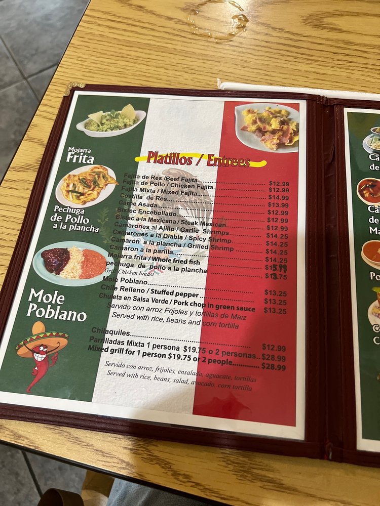Stuffed poblano pepper with cheese, served with Spanish rice, refried beans, and a side of warm tortillas.